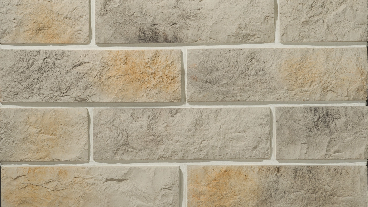 Узкая и длинная плитка с искусной стилизацией под сколотую горную породу. Отличается кропотливым дизайном густого узора из неровностей, вкраплений, шероховатостей, интрузий. Обладает значительной глубиной рельефа за счет резко очерченных граней. Приобретает максимально жесткую фактуру при темном окрасе и визуально сглаживается в светлом исполнении. Формирует эстетичные линии слоистой кладки со смещением в полкирпича. Способна адаптироваться под различные оформительские решения для фасада, цоколя, интерьера. Доступна в контрастных цветовых решениях с серо-бежевыми или золотисто-коричневыми переходами.